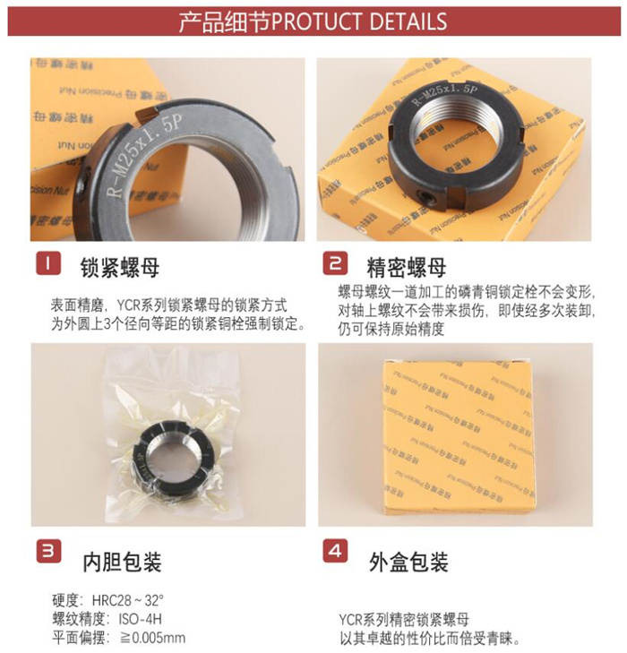 鎖緊螺母的外圓表面至內(nèi)圓螺紋面鉆有貫穿螺紋孔(一般是2個,在外圓面呈90分布),用來擰入小直徑的沉頭頂絲,目的是給螺紋施加一個向心方向的力,防止鎖緊螺母松開。